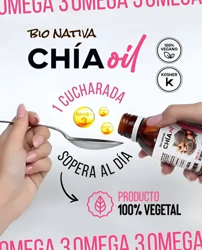 100% Natural y Puro: Extraído de semillas de chía de alta calidad, garantiza la máxima pureza y conserva todos sus nutrientes esenciales, como ácidos grasos omega-3. Versátil en la Cocina: Ideal para aderezar ensaladas, batidos o como complemento en recetas. Su sabor sutil no solo realza tus platos, sino que también aporta un valor nutricional excepcional. Cuidado Personal: Perfecto para la hidratación de la piel y el cabello. Ayuda a mantener la elasticidad y el brillo natural, dejándolos suaves y radiantes.