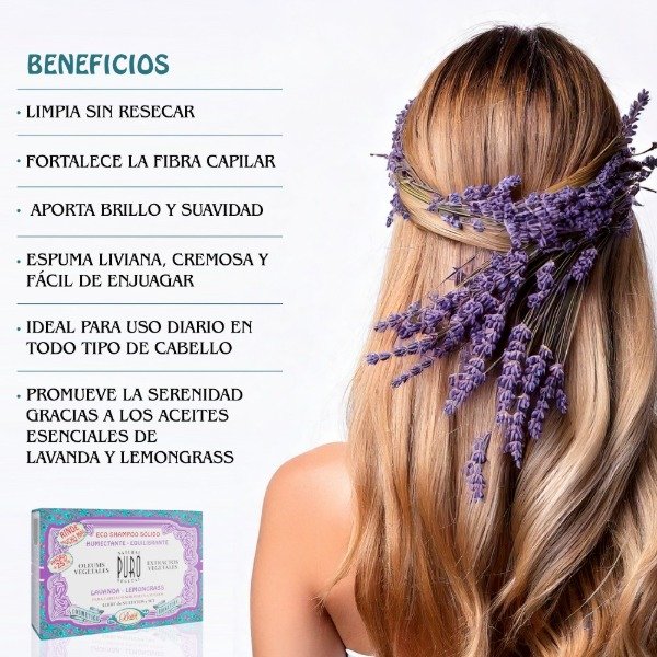 Formulado con aceites vegetales de Jojoba, Argán, Coco y Ricino, conocidos por sus propiedades humectantes y nutritivas. Además, incluye Lavanda y Lemongrass en su fórmula, proporcionando un efecto relajante y antioxidante. Su base de tensioactivos derivados del coco es 100% biodegradable, respetuosa con el medio ambiente.